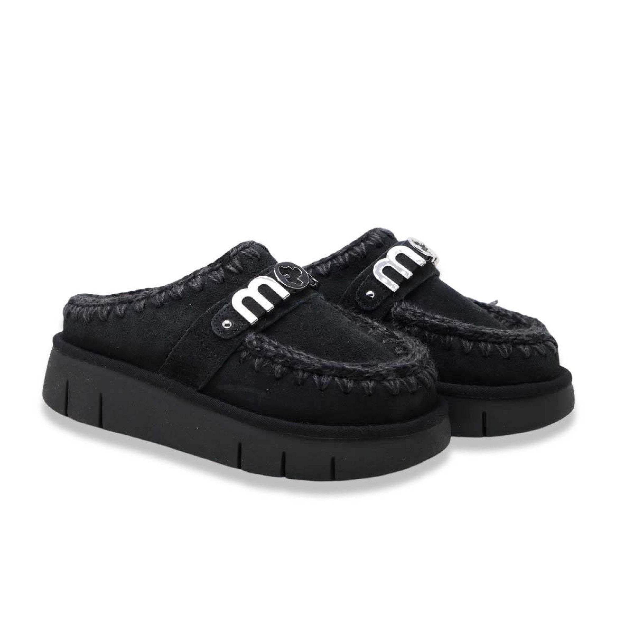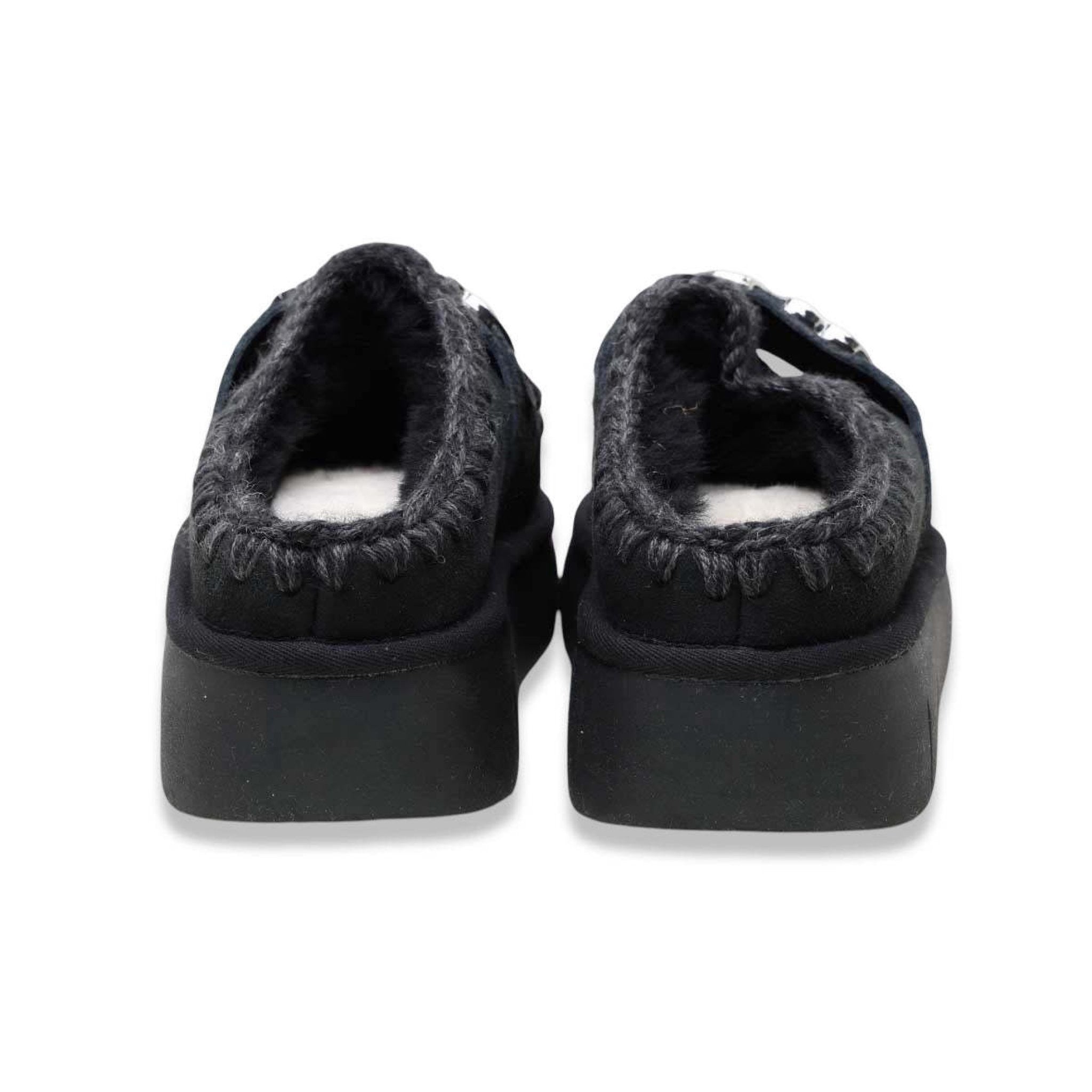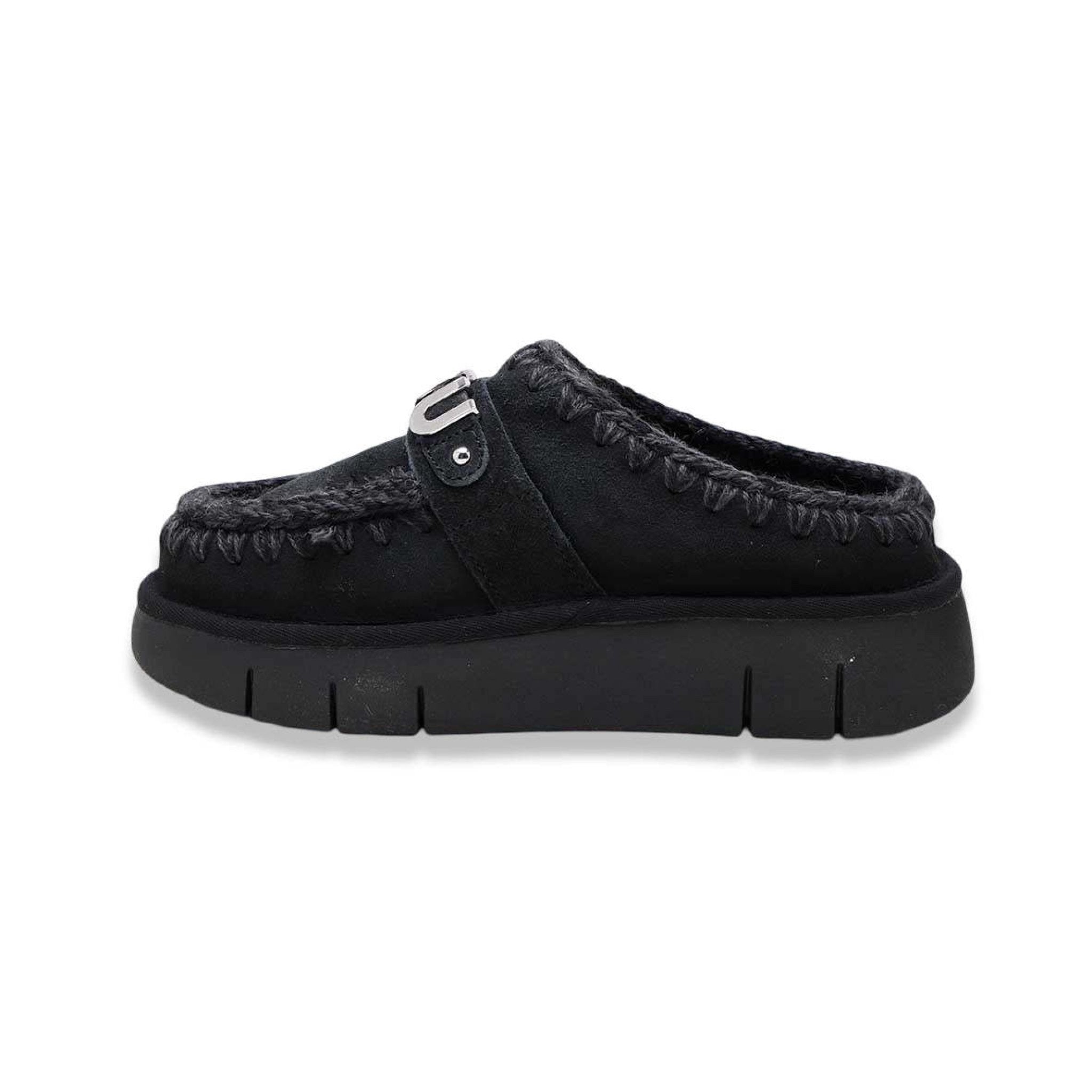 🥿 Mou – Bounce Clog Black Le Mou Bounce Clog Black uniscono comfort e stile in un design iconico e accogliente, perfetto per la stagione fredda. Realizzate in morbida pelle scamosciata color nero, sono rifinite con le caratteristiche cuciture in lana crochet fatte a mano, simbolo distintivo del marchio Mou. La suola platform in gomma leggera garantisce massimo comfort e ammortizzazione, mentre l'interno in morbido shearling offre una sensazione di calore e benessere durante tutto il giorno. ✨ Caratteristiche principali: Colore: Nero Materiale esterno: pelle scamosciata di alta qualità Interno: shearling naturale Fondo: in gomma ultraleggera Dettagli: cuciture crochet fatte a mano e logo metallico Mou Altezza suola: ca. 4 cm Modello: clog aperto sul tallone Calzata: confortevole e accogliente Perfette per uno stile cosy-chic, da indossare sia in casa che per look casual in città. 💫